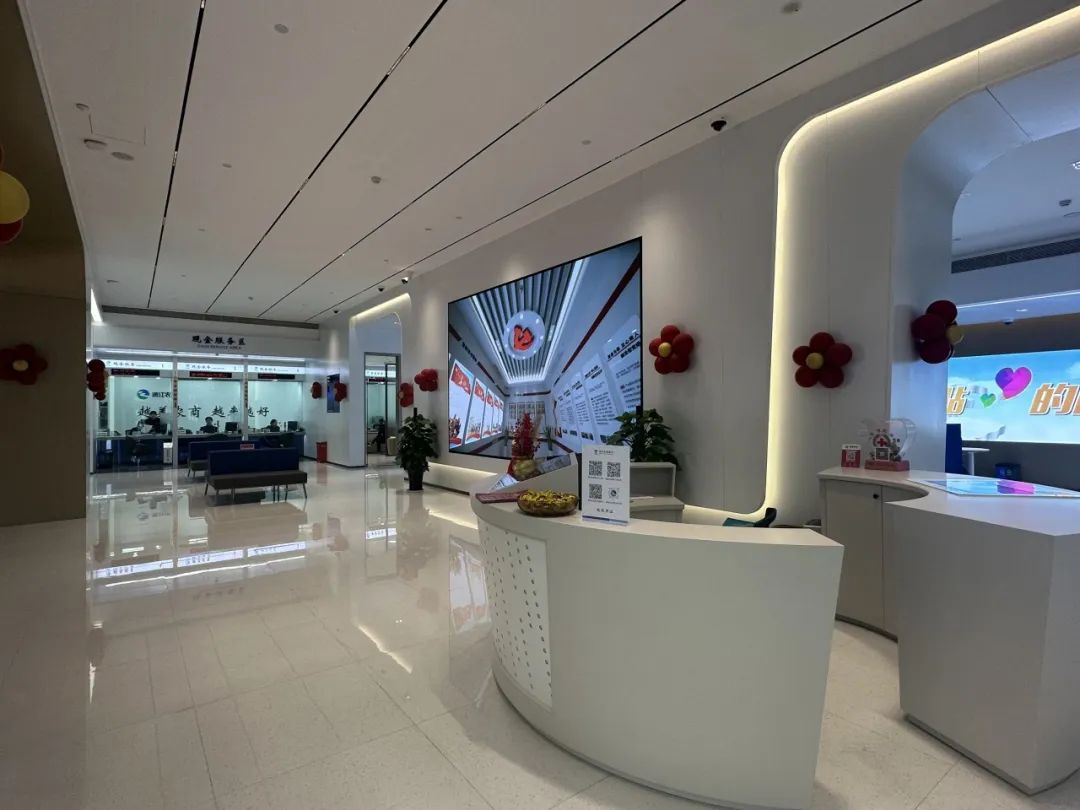 因智能,而智慧,嵊州市佳明电子为嵊州农商银行(三江支行)提供了完善一体化LED智能方案,我们深度调研展厅定位和需求,让最后呈现的效果于整体化,更好的提升银行的环境、经济效益,为客户提供更全面的金融服务。